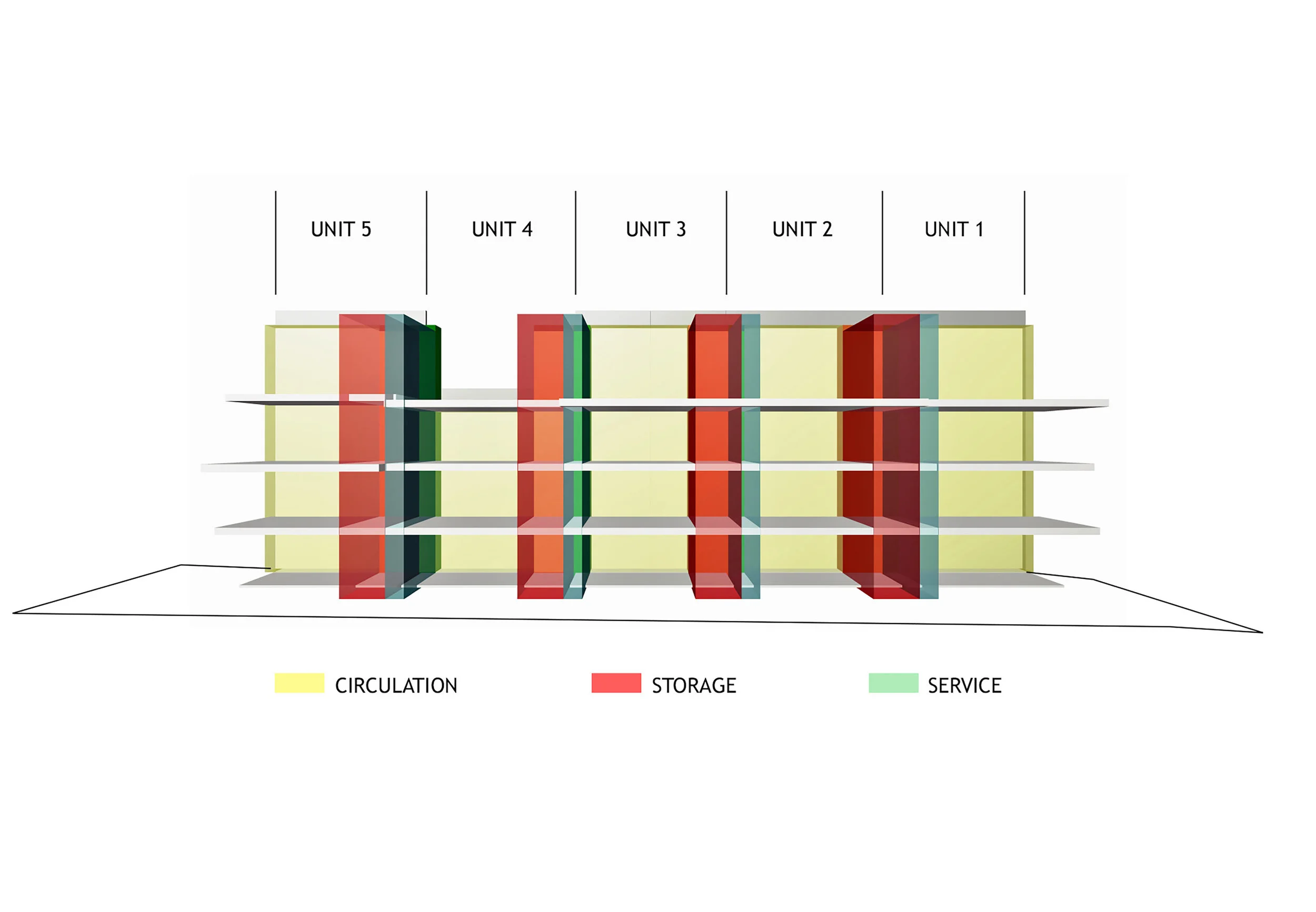 Also known as the Garden Factory Lofts, this building is a five unit project just north of downtown Denver, and adjacent to our Furniture Factory Lofts project. The design concept is to transition residents from the energy of the horizontal street up vertically into the serenity of their skyward city home. Site conditions dictated a narrow 12′ footprint for the building base necessitating cantilevered upper levels. The project is designed to incorporate pre-fabricated materials and assemblies to speed construction and to lessen the impact on neighboring properties.